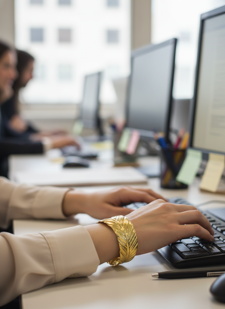 Comfort & Fit: Designed as an open cuff, making it easy to slip on and off and potentially slightly adjustable for various wrist sizes.
